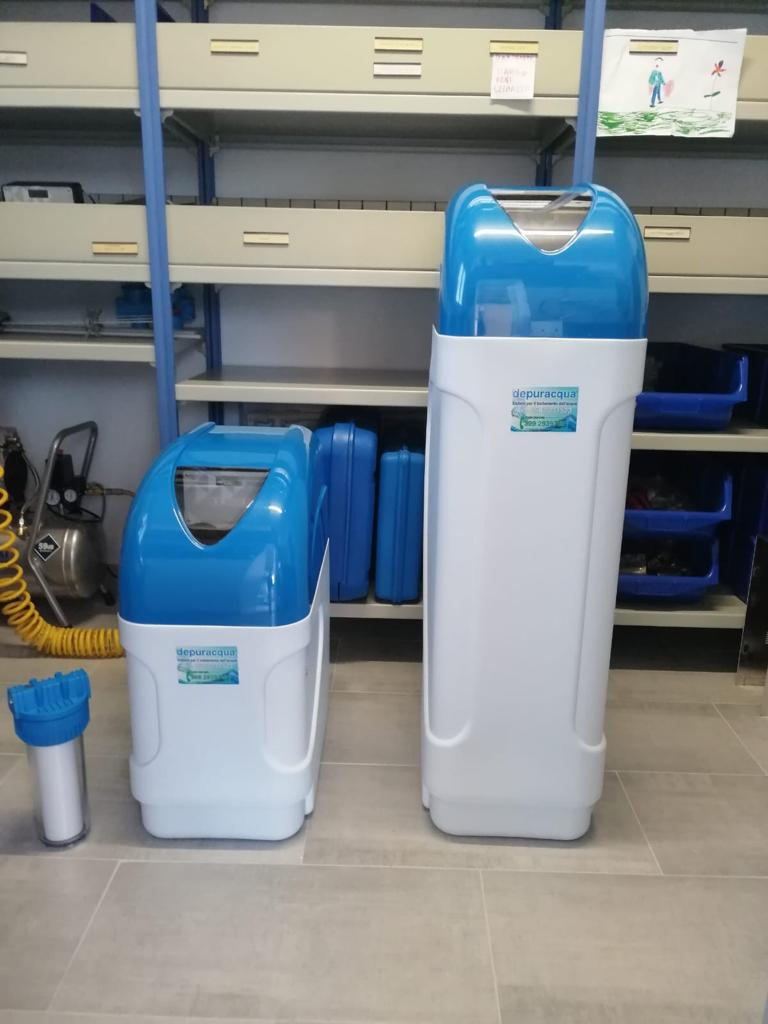 Addolcitori a doppio corpo o cabinati monoblocco a valvola centralizzata con rigenerazione a tempo/volumetrica, centralina di controllo elettronica con dispositivo per la sterilizzazione della resina in fase di rigenerazione a norma del decreto Ministeriale Sanità D.P.R. 443 del 21/12/90.e mixer di miscelazione della durezza integrato alla valvola.